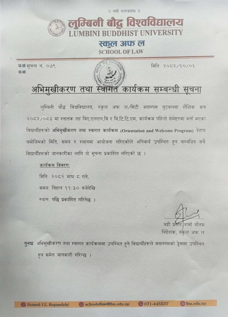 January 20, 2026 2026-01-20 15:10अभिमुखीकरण तथा स्वागत कार्यक्रम सम्बन्धी सूचना |