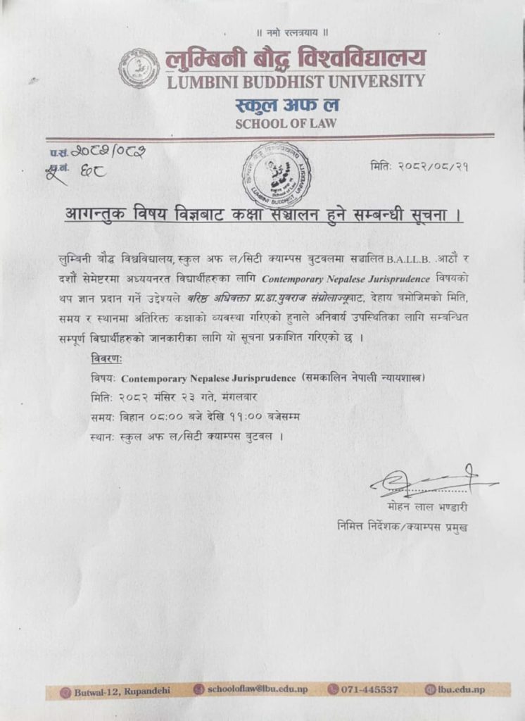 BALLB दशौं सेमेष्टरको कक्षा संचालन सम्बन्धी सूचना |