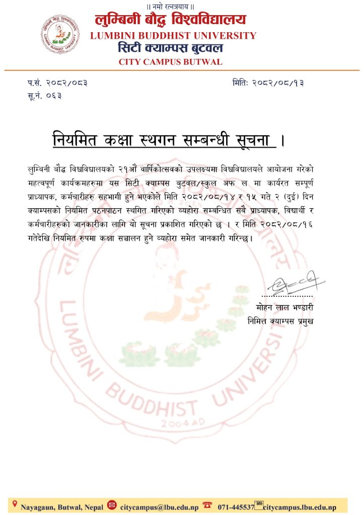November 29, 2025 2025-11-29 20:18नियमित कक्षा स्थगन सम्बन्धी सूचना |