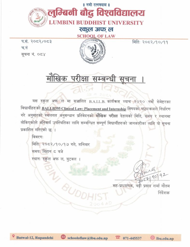 Trial Advocacy विषयको मौखिक परीक्षा सम्बन्धी सूचना |