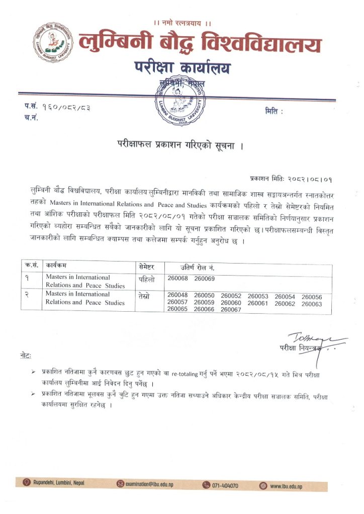 लु.बौ.वि. परीक्षा कार्यालयबाट MIRPS कार्यक्रम अन्तर्गत पहिलो र तेस्रो सेमेष्टरको परीक्षाफल प्रकाशन गरिएको सूचना |