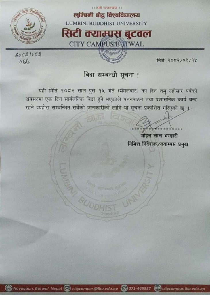 December 29, 2025 2025-12-29 16:06विदा सम्बन्धी सूचना |