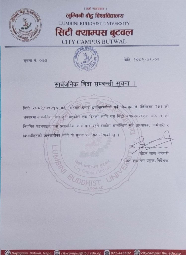 December 24, 2025 2025-12-24 17:37सार्वजनिक बिदा सम्बन्धी सूचना |