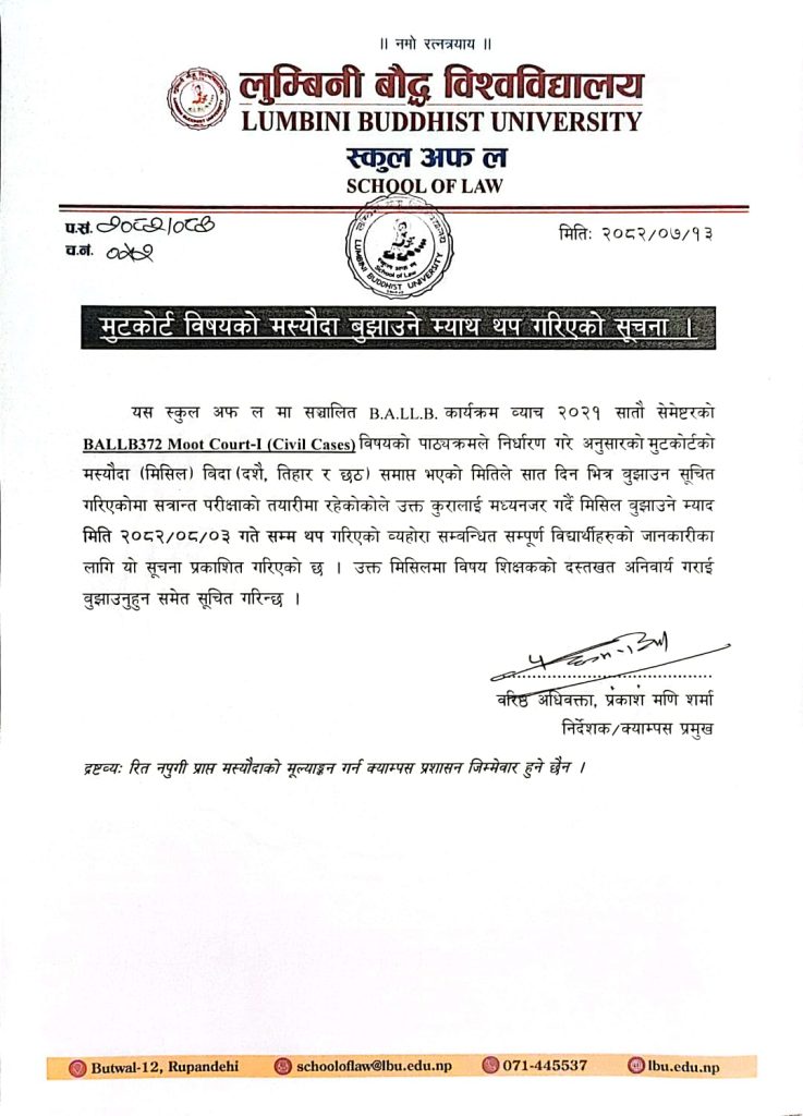 BALLB-2021, मुटकोर्ट विषयको मस्यौदा बुझाउने म्याद थप गरिएको सूचना |