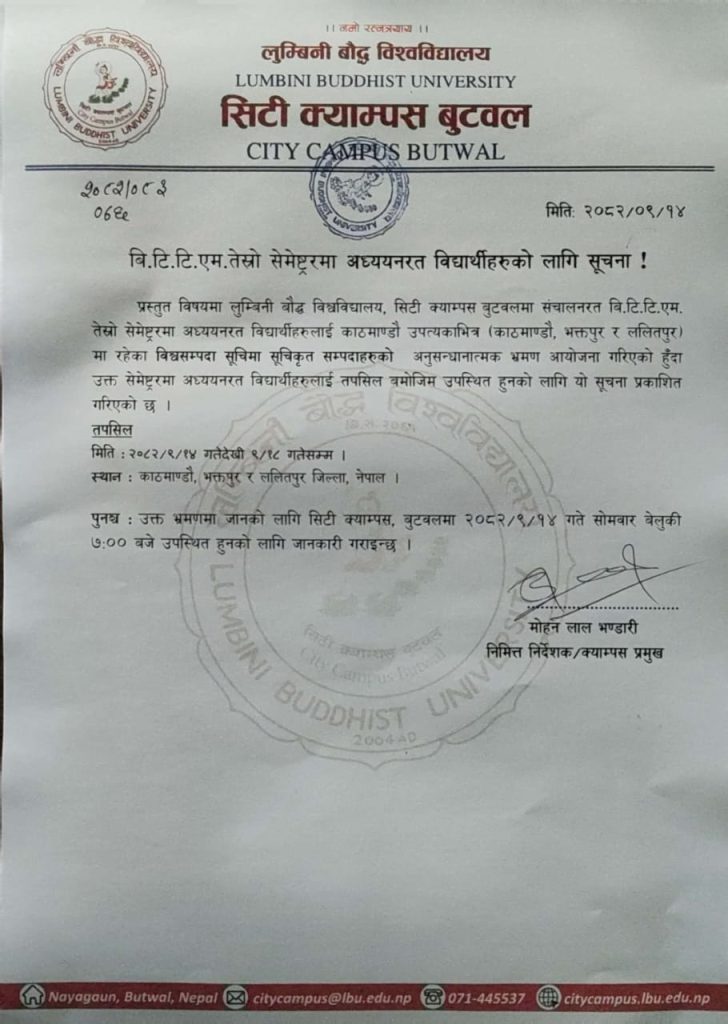 December 29, 2025 2025-12-29 16:01BTTM तेश्रो सेमेष्ट्ररमा अध्ययनरत विद्यार्थीहरुको लागि सूचना |