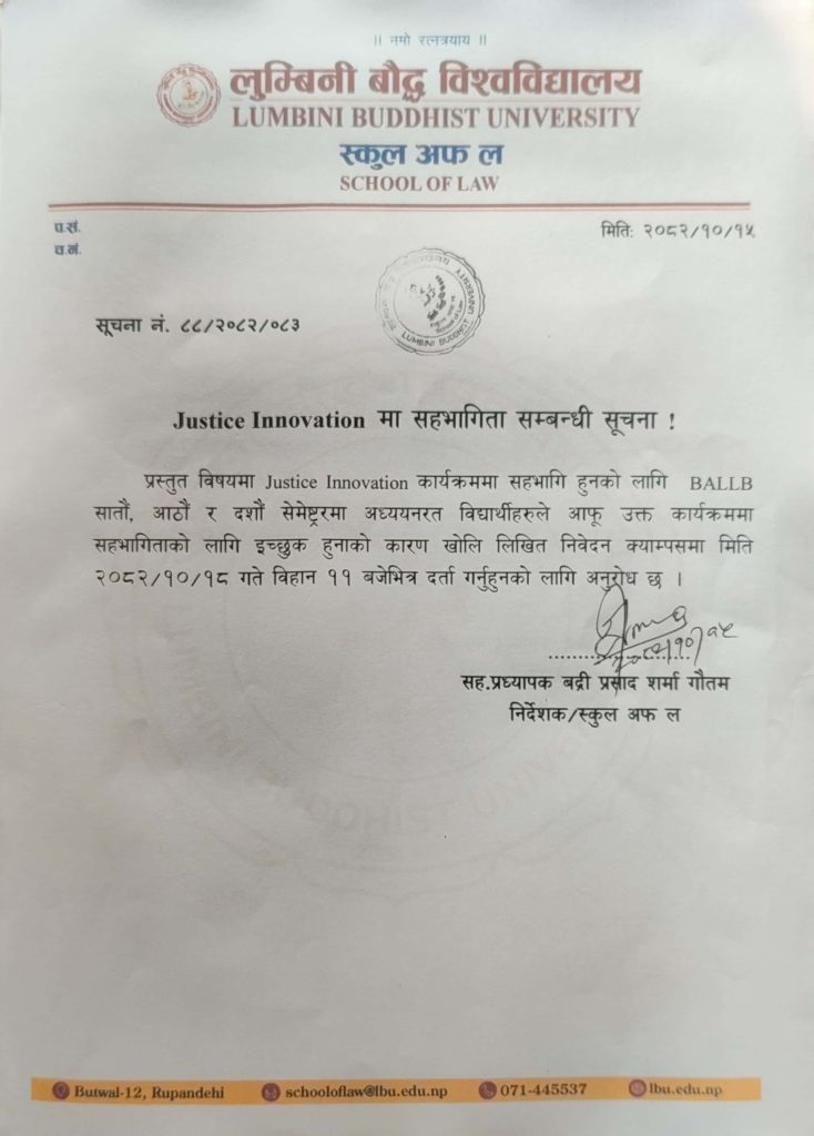 January 29, 2026 2026-01-29 16:11Justice Innovation मा सहभागिता सम्बन्धी सूचना |