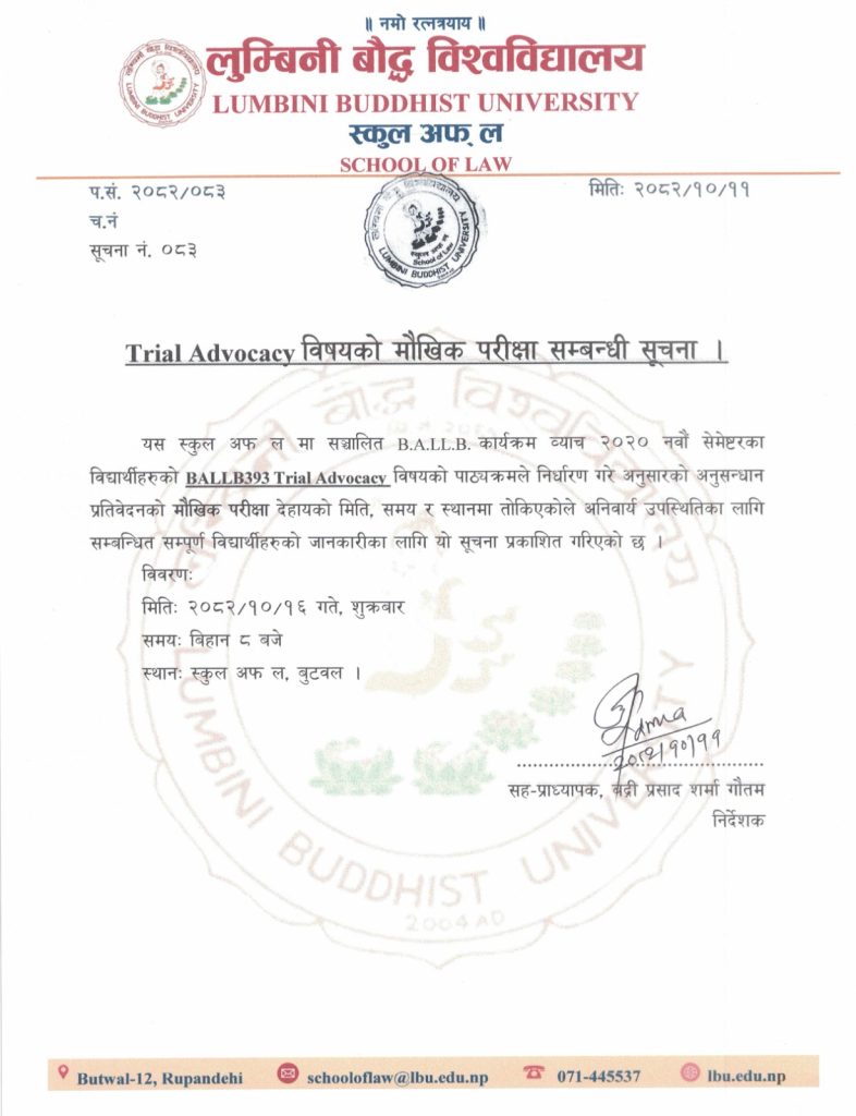 Trial Advocacy विषयको मौखिक परीक्षा सम्बन्धी सूचना |